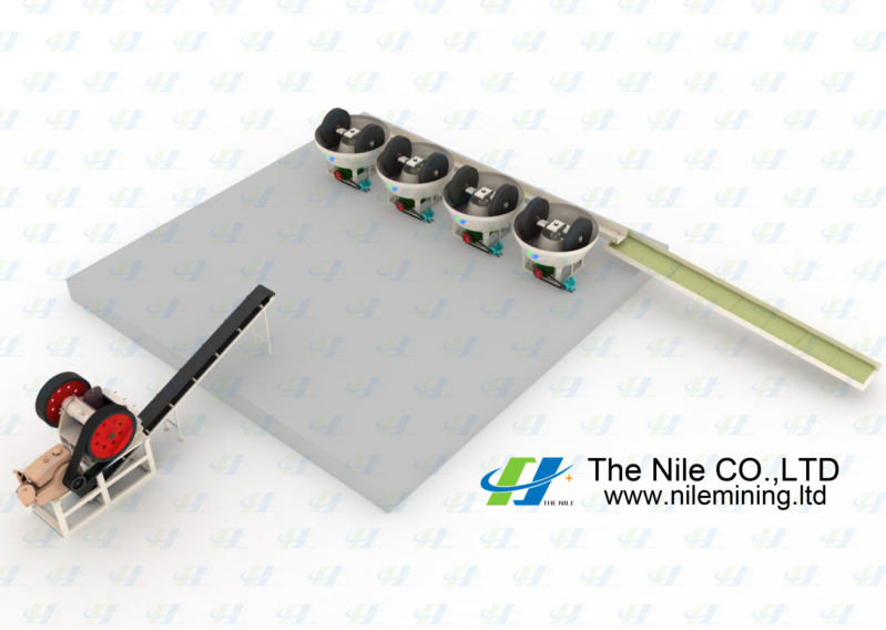 2015年,公司老客户因为预算有限,投资了一条小型金矿生产线。主要设备有:移动颚式碎石机(颚破)、湿碾机、混汞板和蒸汞罐。