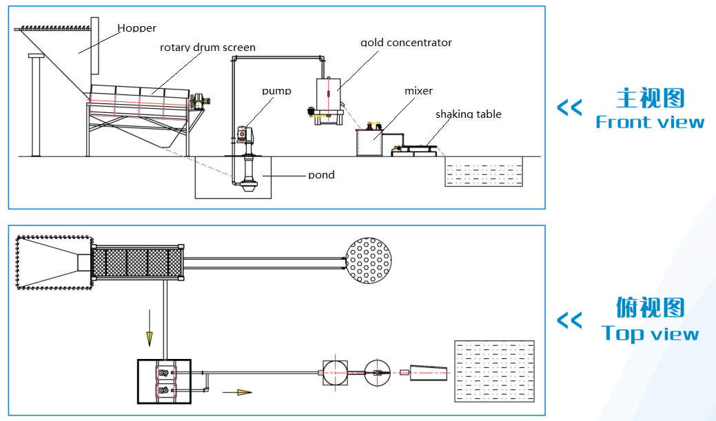 砂金选矿工艺适用于河道、古河道、海滨沉积砂金矿。规模可大可小。