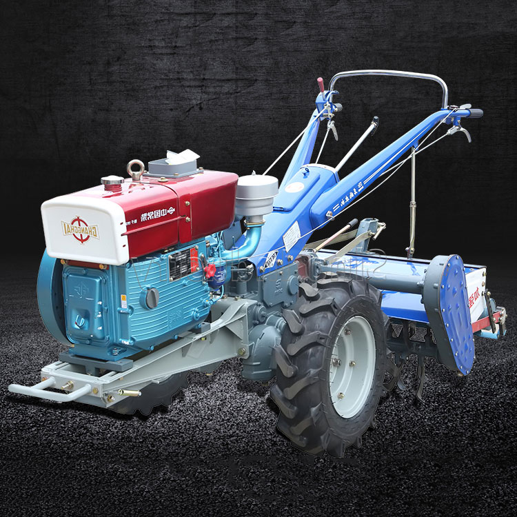 手扶拖拉机是一种小型拖拉机,流行于乡镇间的一种运输工具和农业机械,以柴油机为动力,其小巧灵活且动力强劲的特点使其很受农民的欢迎。手扶拖拉机能行驶是靠内燃机的动力经传动系统,获得驱动扭矩的驱动轮再通过轮胎花纹和轮胎表面给地面小、向后的水平作用力(切线力),这个反作用力就是推动拖拉机向前行驶的驱动力(也称位推进力)。结构简单,功率较小,适于小块耕地。由驾驶员扶着扶手架控制操纵机构、牵引或驱动配套农具进行作业。