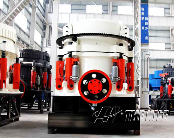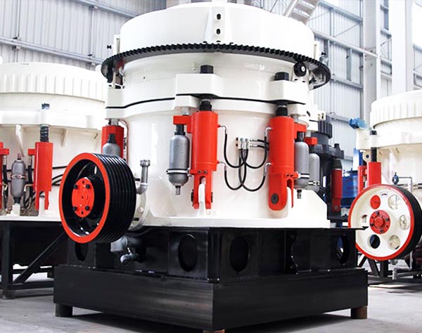多缸液压圆锥碎石机工作时电动机通过三角皮带、传动轴、伞齿轮副带动偏心套旋转,动锥在偏心套的作用下做旋摆运动使动锥和定锥时而靠近时而偏离。物料在破碎腔内不断受到挤压、冲击而被破碎,破碎的物料从下部排出。