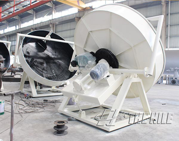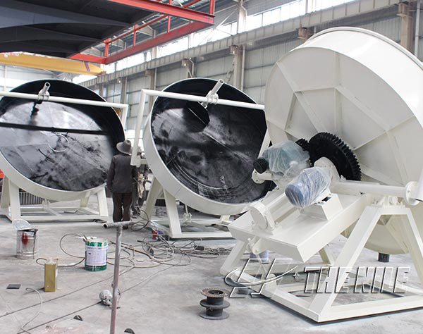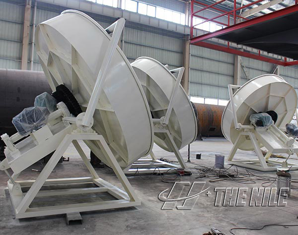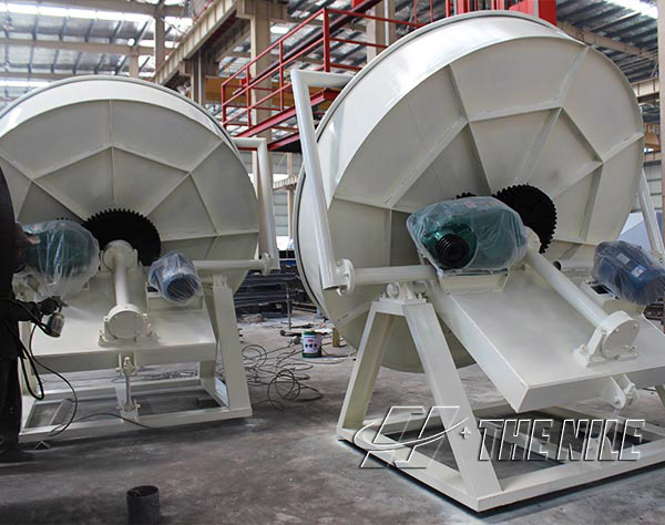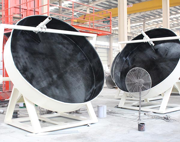 圆盘造粒机底刮刀采用电动刮刀或无动力刮刀。物料在成球盘内实现全盘成球。盘体倾角可调,球粒大小易于控制,粒度均匀、强度好,产量高。圆盘可按要求进行内衬处理,以提高盘体防腐能力。